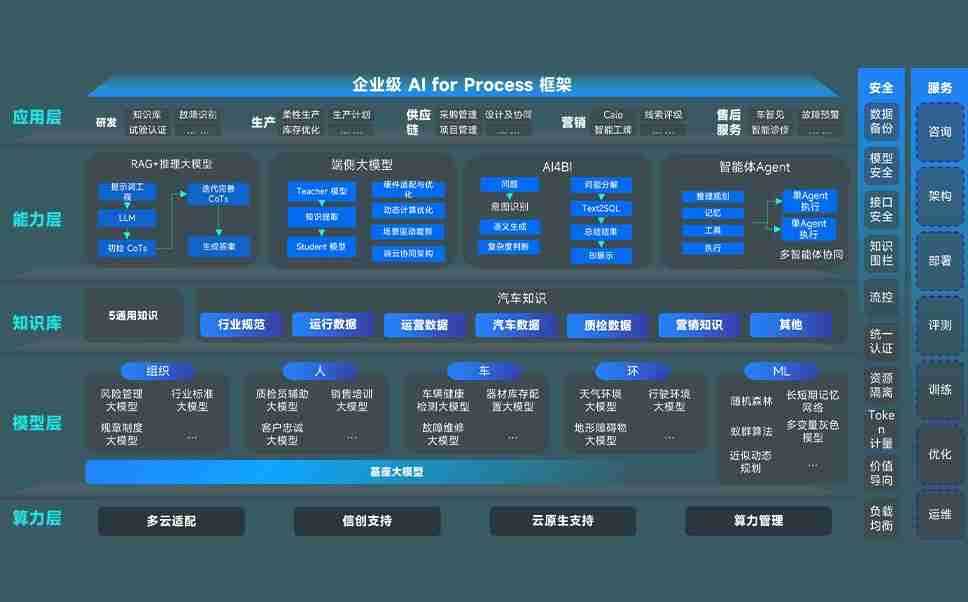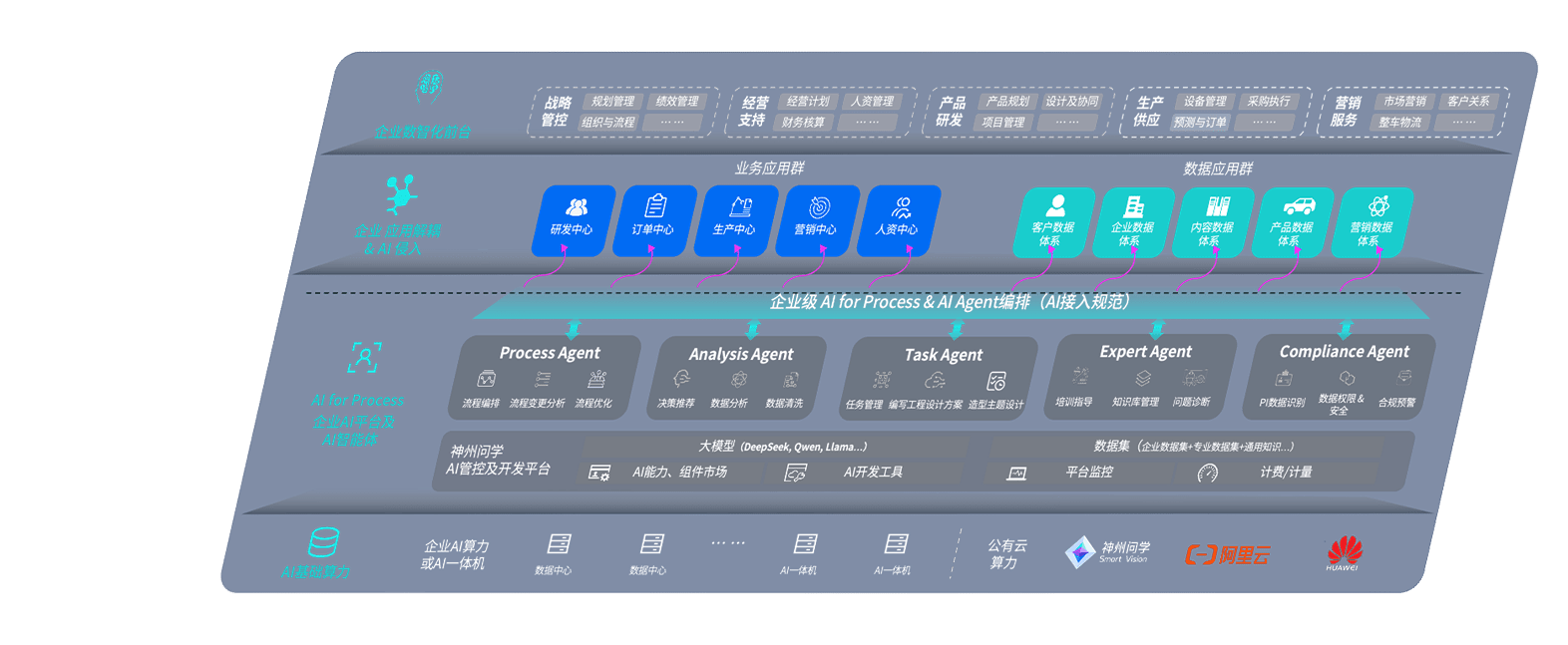 NG大舞台问学智车解决方案是一套基于AI技术的汽车行业智能化系统,,,,覆盖从底层算力到顶层AI应用的全栈方案。。。。方案由算力层、、模型层和应用层组成:算力层,,方案支持多种一体机配置,,,,具备云端灵活部署、、、、多云适配以及动态优化计算资源的能力;模型层,,,NG大舞台问学平台版提供了企业级AI应用一站式构建与管理平台,,支持基于后训练强化技术的汽车企业专属模型的训练、、、、评测和运营;应用层,,,NG大舞台问学DeepSeek版提供包括超级员工、、、、智能招采、、、、智能营销、、智能客服、、AI for BI等一系列解决方案,,,,可助力汽车行业实现数字化转型,,让管理更智能、、、、响应更敏捷。。